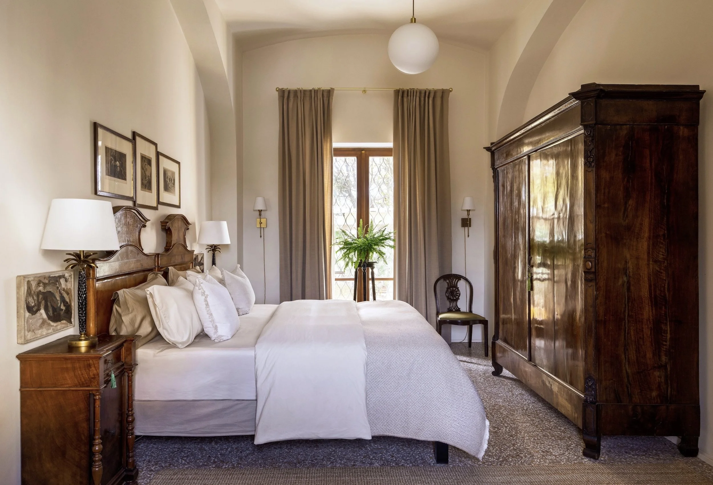 La Giardina's four guest rooms are named after members of Bruno's family — a personal tribute woven into the fabric of the house. The rooms are warm and art-filled, furnished with pieces that have their own histories, and designed to feel like part of a home rather than a hotel. Each includes a private coffee station, mini fridge and luxurious bath amenities. Our rooms can be booked individually or, for groups, as an exclusive whole-house experience.